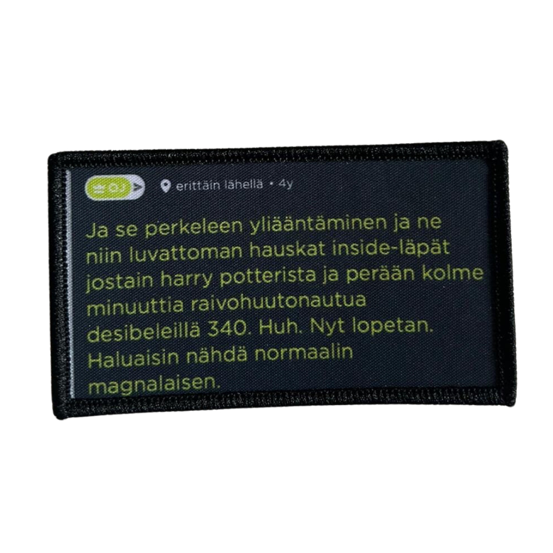 Voit tilata haalarimerkkejä Kide.Appin kautta: https://kide.app/products/376e908f-cce0-4d81-aec7-750cd608dfe8