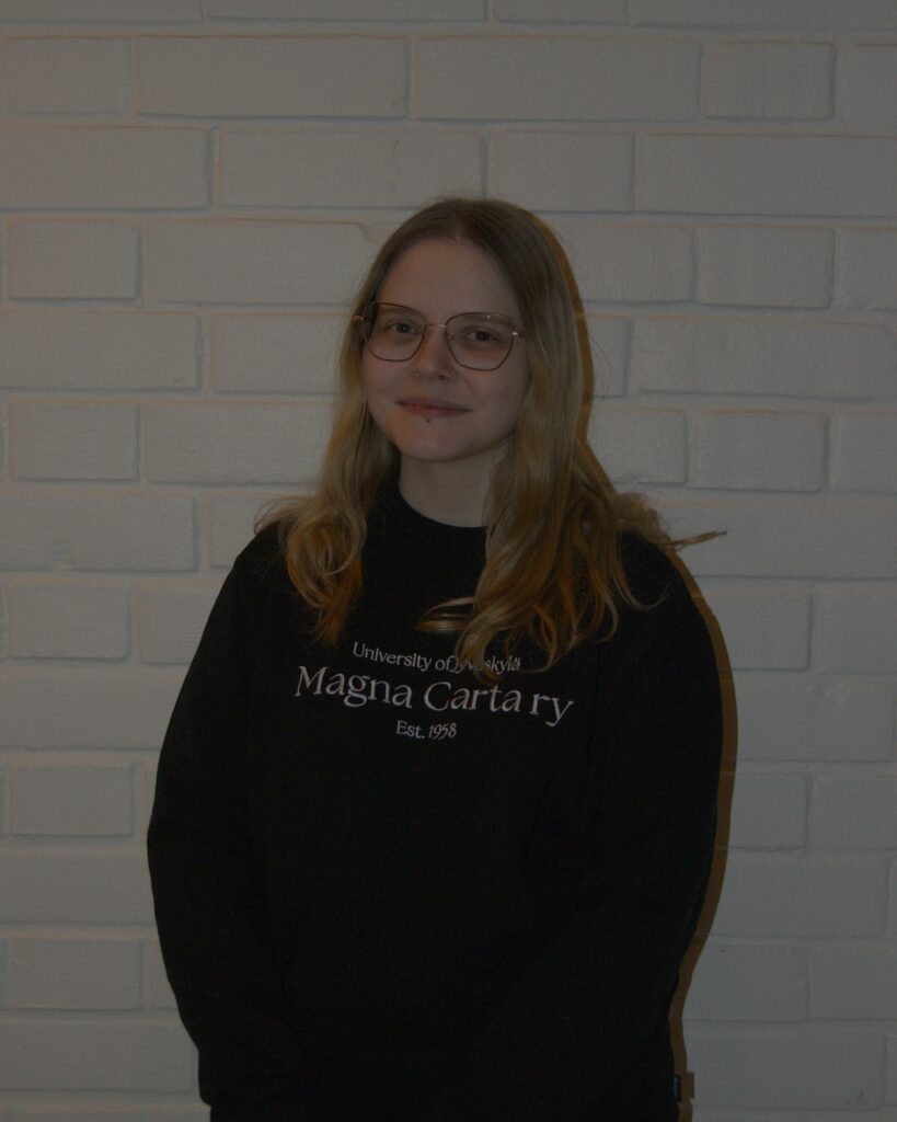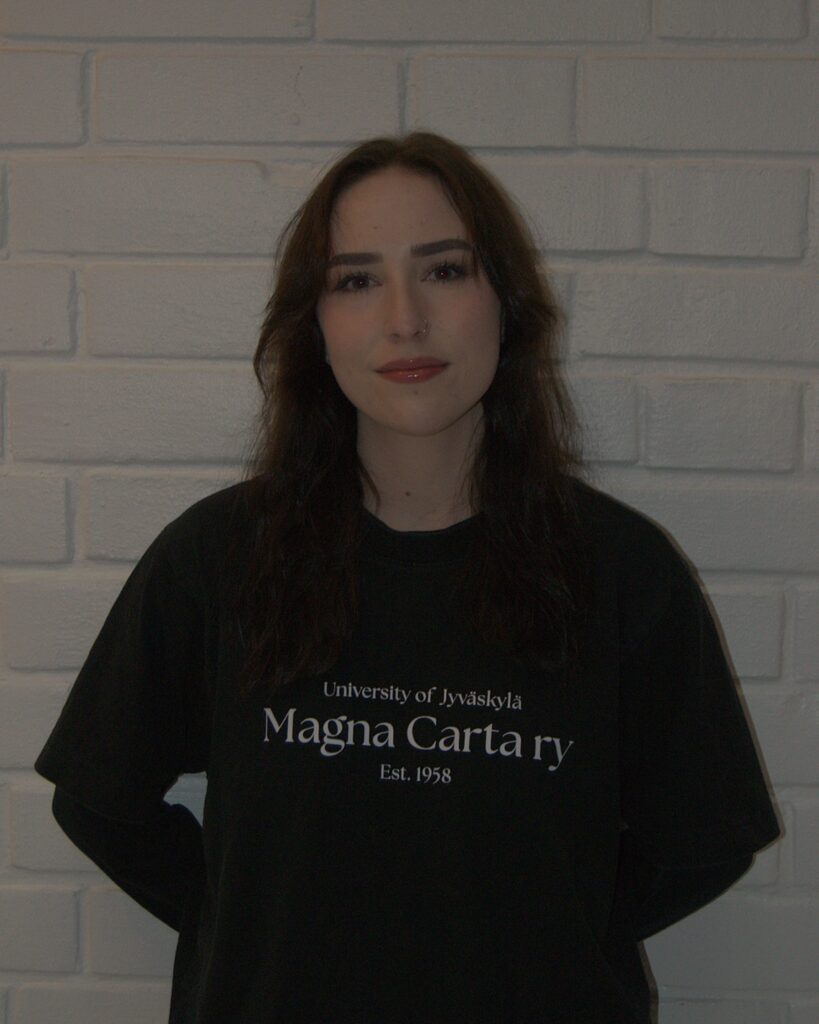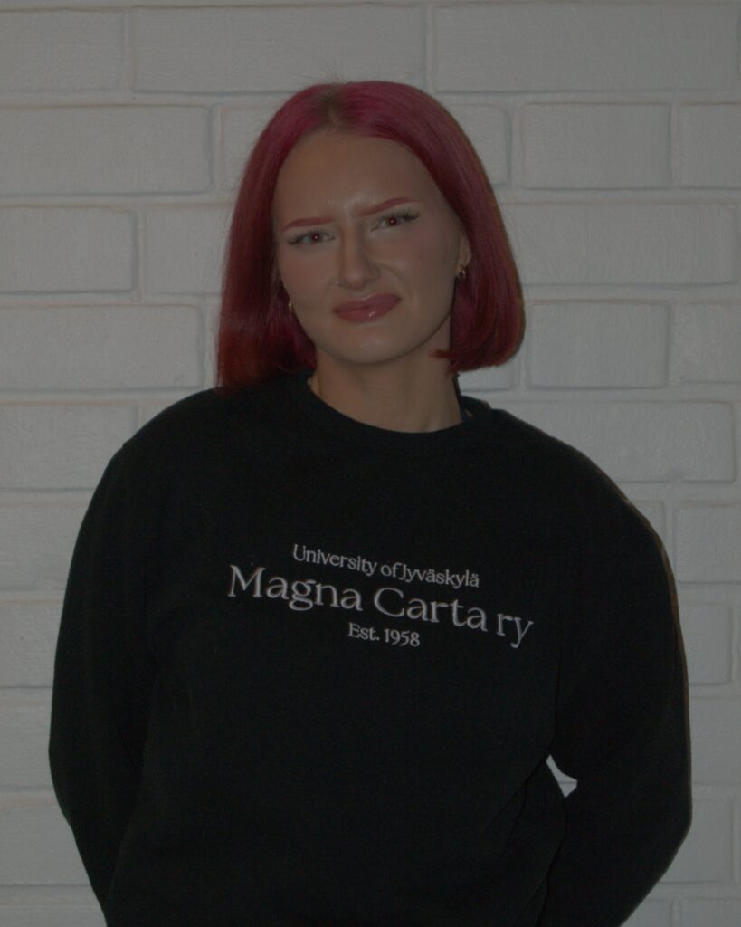Moii!   Mä oon Mari ja oon neljännen vuoden englannin opeopiskelija. Sivuaineina opiskelen psykologiaa ja ruotsia. Aloitin viime vuonna hallituksessa kesken kauden, joten tämä on ensimmäinen kokonainen kauteni, ja toimin siis sihteerinä. Vapaa-ajalla tykkään lukea kirjoja, katsella sarjoja, tehdä palapelejä ja käydä lenkillä.   Sihteerinä mun vastuulla on valmistella pöytäkirjat ennen kokousta, kirjoittaa pöytäkirjaa kokouksien aikana ja lopuksi viimeistellä ne ja lähettää Magnan sähköpostilistalle. Lisäksi käännän pöytäkirjoista epävirallisen englanninkielisen version. Hallinnoin myös Magnan sähköpostilistaa, hyväksyn sinne lähetetyt viestit ja lisään uudet jäsenet listalle.   Mulle voi laittaa viestiä mihin tahansa liittyen, esimerkiksi sähköpostilla, Instagramissa @marihuuskonen, Telegrammissa @marihuuskonen tai tulla juttelemaan yliopistolla ja tapahtumissa! <3